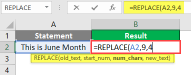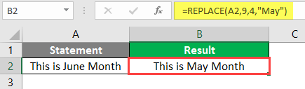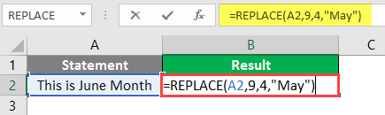 Now we need to replace June with May by using the REPLACE function. Follow the below steps to REPLACE.