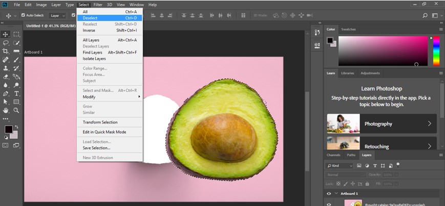 Step 13: Now go to the Select menu of the Menu bar of this software, which is at the top of the working screen. A popup list will be open. Choose the Deselect option from the list by clicking on it.