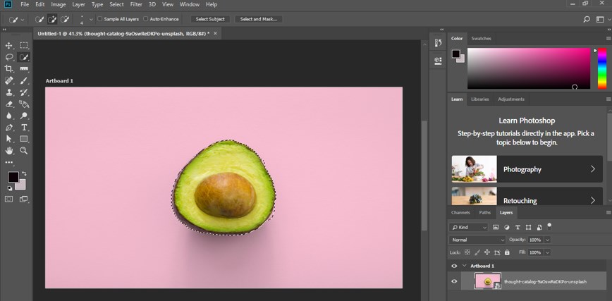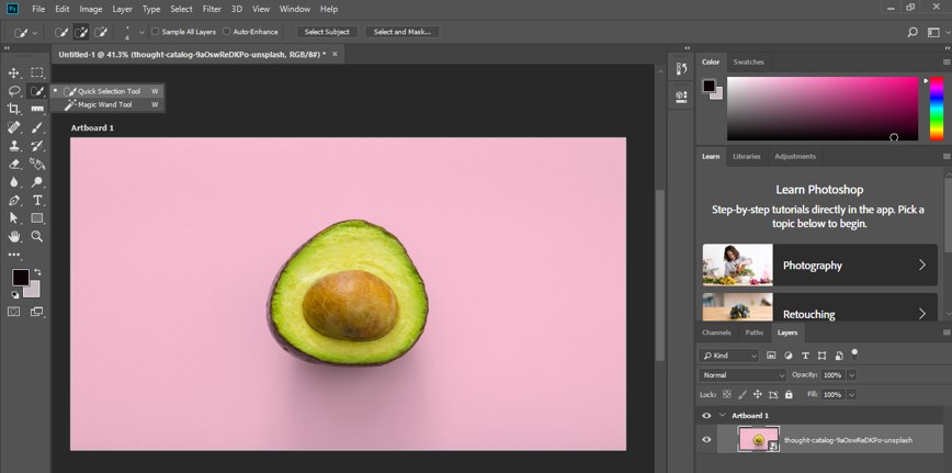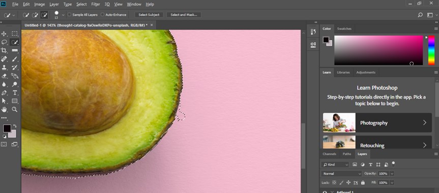 Step 4: Take a quick selection tool from the tool panel of this software to select this fruit object because I want to resize it.