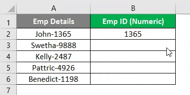 You can see that the employee ID is of length 4 from the right-hand side of the string for all the cells (It can also be manipulated using the LEN-SEARCH formula as we did in the previous example). Therefore, use 4 as a num_chars argument.