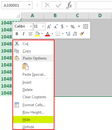 This is not strange for you if you are old enough to excel in hiding and unhiding. A similar technique can apply here as well. We rarely use more than 1 lakh rows of data sets. I often don’t want to show unnecessary rows to the users. We can hide both rows and columns in Excel. Follow the below steps to learn this technique.