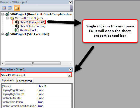 Step 6: Close the VBA Editor window and Save the workbook. Now the user cannot move beyond the selected cells. We have limited the access of rows to the users.