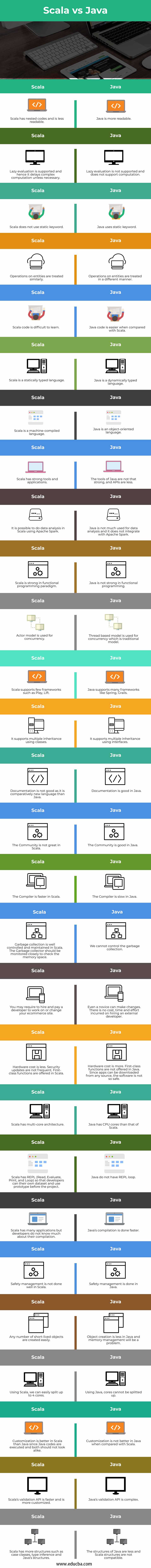This is a guide to the difference between Scala vs Java. Here we also discuss the Scala vs Java key differences with infographics and comparison table in detail. You may also have a look at the following articles to learn more –