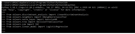 2. We are importing the classifier using the sklearn module in this step. We are importing all the classifier which was present in scikit learn.