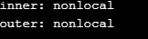 Non-local variable is the variable that is defined in the nested function. It means the variable can be neither in the local scope nor in the global scope. The nonlocal keyword creates a nonlocal variable. In the following code, we created an outer function, and there is a nested function inner(). In the scope of the outer() function, we define the inner() function. Changing the nonlocal variable defined in the inner() function reflects changes in the outer function.