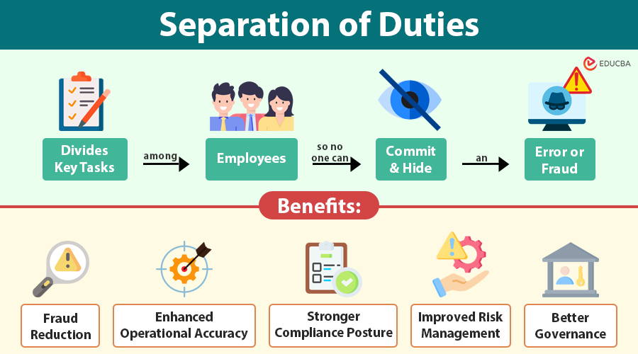 - Fraud prevention: By dividing control and oversight, SoD makes it harder for any one individual to commit fraud. Fraud typically requires both opportunity and concealment; separation of duties removes that opportunity.