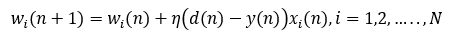 And d(n) =+1 if input is class 1, d(n) = – if input is class 2.