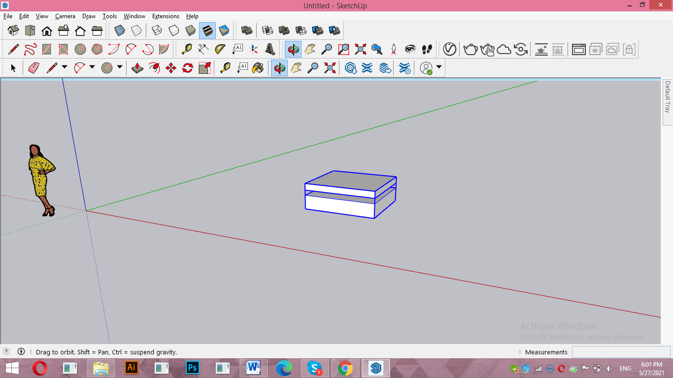 For exampling you about these options i will create some 3D components. So take Rectangle tool from tool panel and draw a rectangle like this.