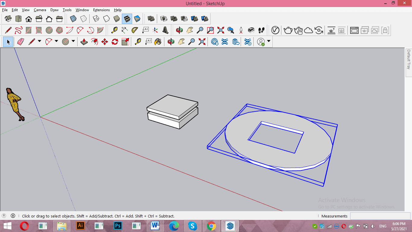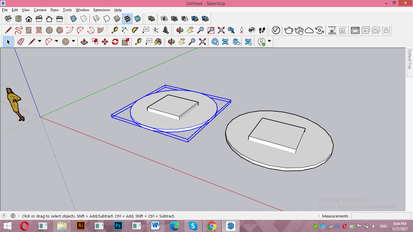 You can see the circular object subtracted from cuboid object. Now in the copy of these objects i will first select cuboid then Circular object by holding Ctrl button of keyboard.