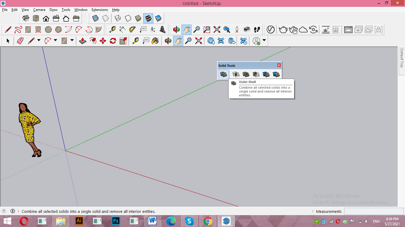 Now i will select these object again this time i will click on Outer Shell option of Solid tools.