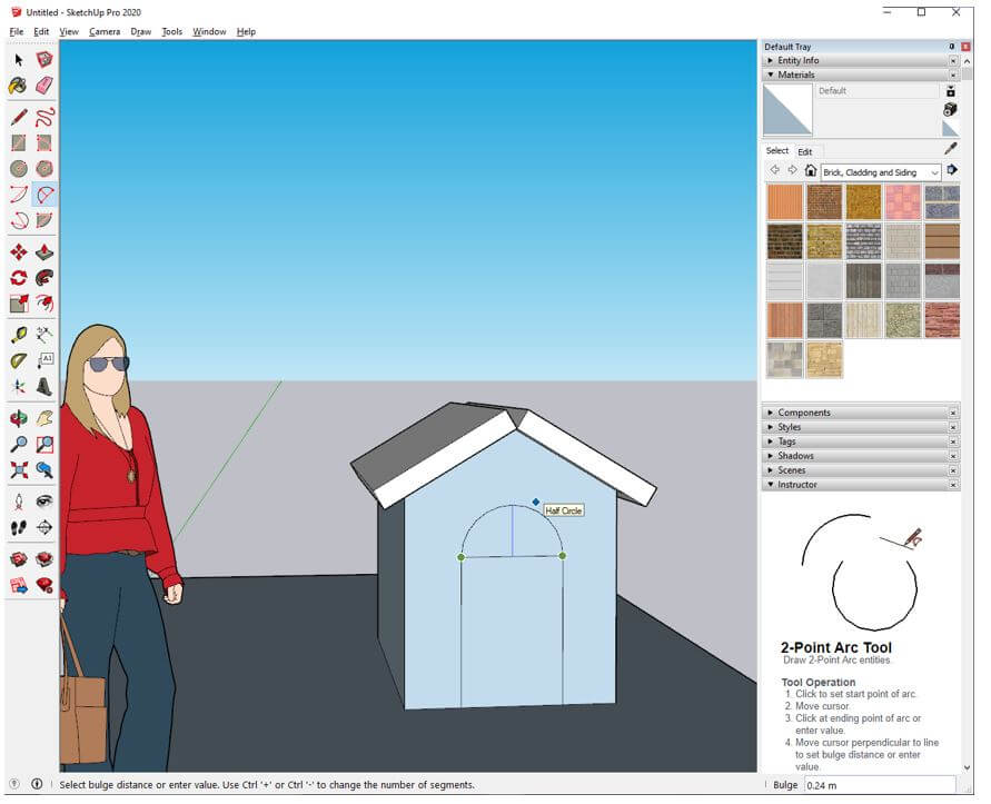 Step 11: Then use 2 point arc tool and first click on top left corner of rectangle and then click top right corner and let go the mouse which will create an arc and when a half circle is created then click to create a rounded top.