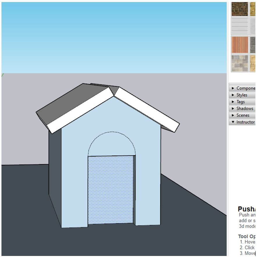Step 12: Then again we use push pull tool to move the door rectangle inside.