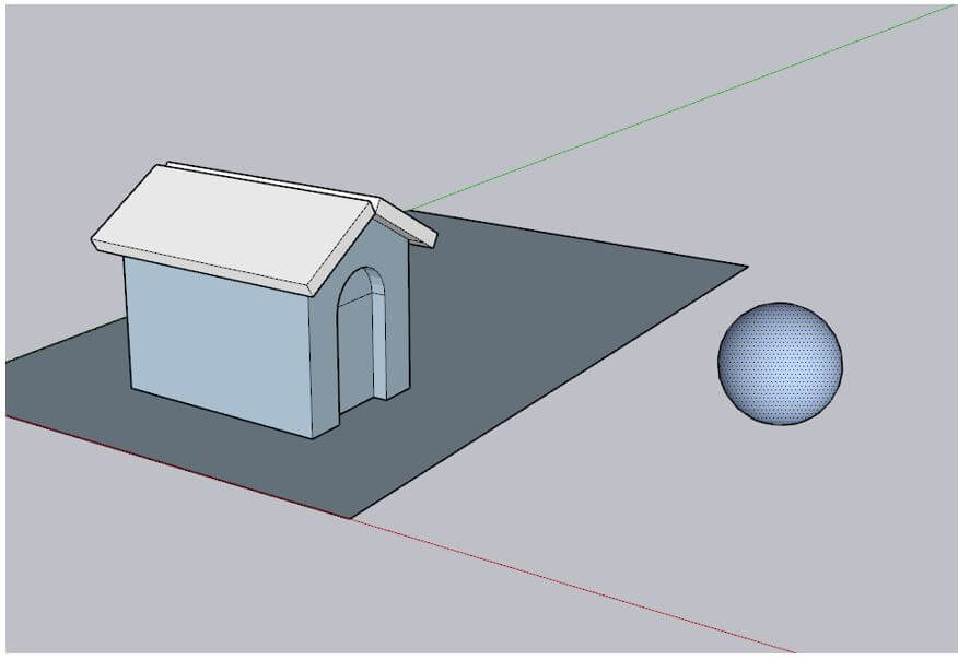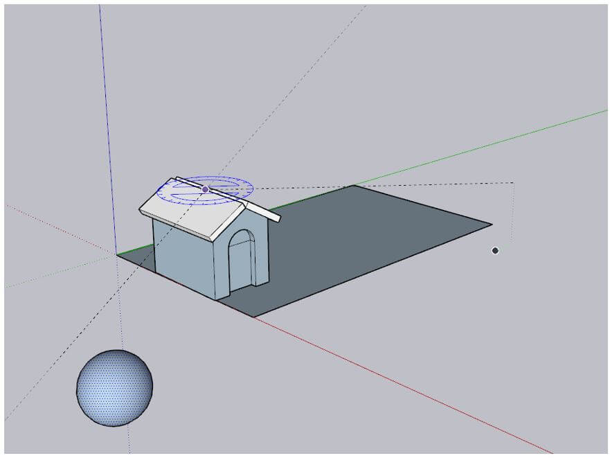 Step 25: Now we have selected the midpoint of the house and then dragged past the sphere and then rotated the sphere around the house.