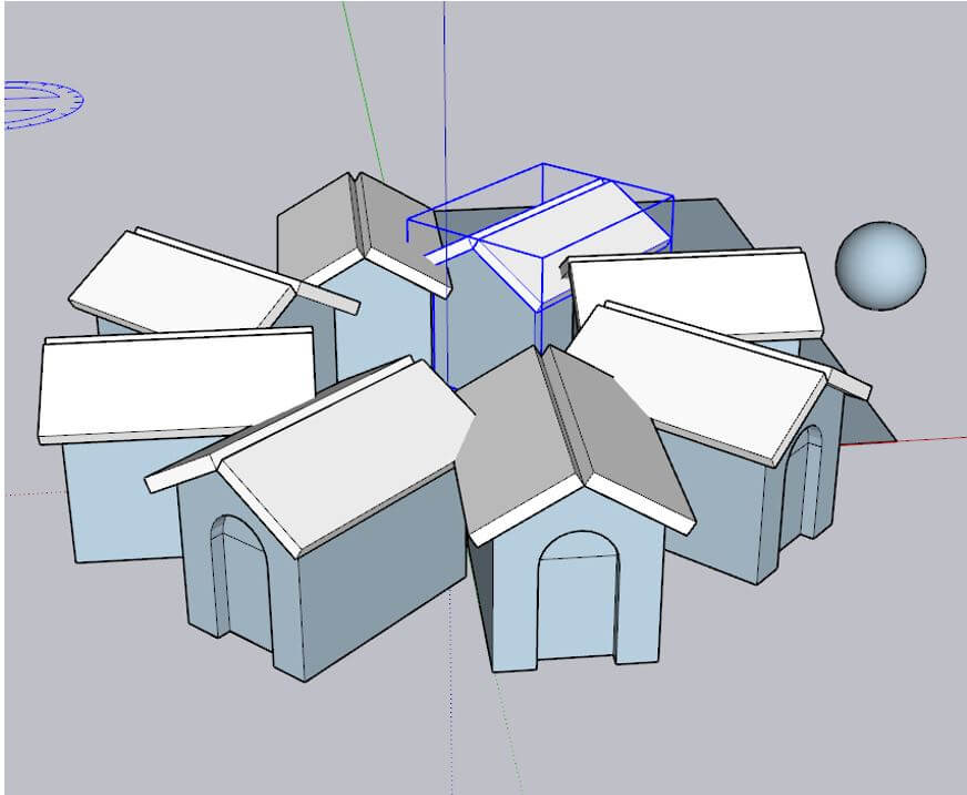 Step 30: Lastly we can also create multiple copies of the house using rotate tool is by first selecting the house and then using rotate tool click on the origin and the endpoint of the house.