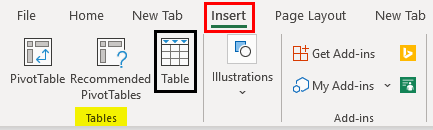 Step 1: Click on Insert tab > select Table under the Tables option menu.