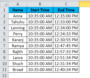 The time taken to complete the race arrived by deducting the start time by the end time. The image below shows the actual time each one takes to complete the race.