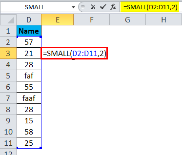 Below is the SMALL Formula in Excel :