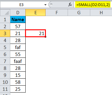 - SMALL Function ignores text values and considers only numerical values.