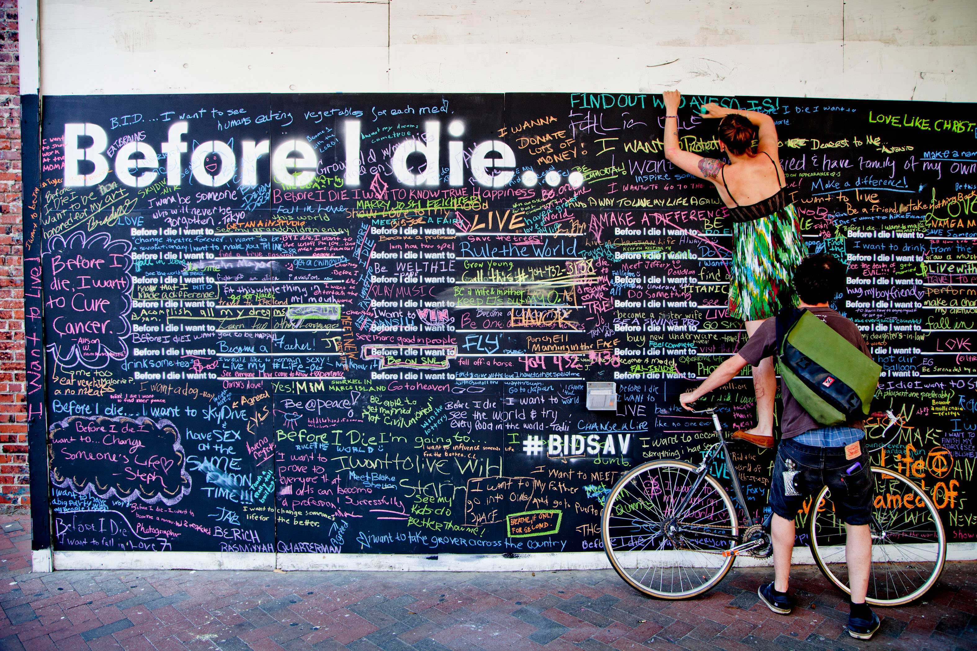 This year, nearly 1,000 “Before I Die” walls have come up in over 70 countries, including China, Kazakhstan, South Africa, Brazil, and Iraq. It tore down the taboo of contemplating death and discussing it on social marketing campaigns. It celebrates the life and makes us think about everything that truly matters to us.