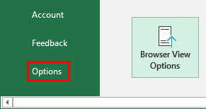 - Click on the File option or an Office Button; then, click on Excel Options.