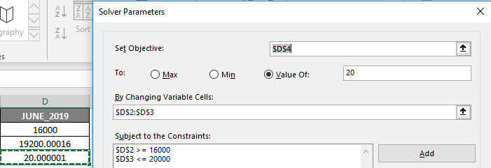 - Constraints: D2 should be >= 16,000 and D3 should be <= 20,000