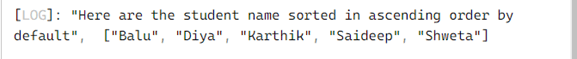 console.log(‘Here are the student name sorted in ascending order by default’, student_name);