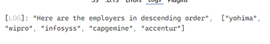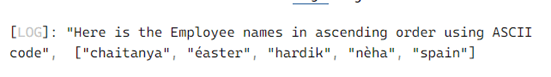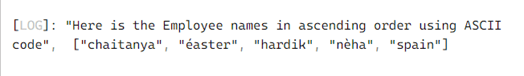 console.log('Here is the Employee names in ascending order using ASCII code', employee_Ascii);