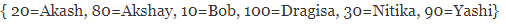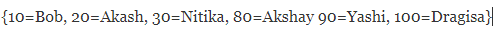 HashMap<Integer, String> map = new HashMap<>(); map.put(80, "Akshay");
