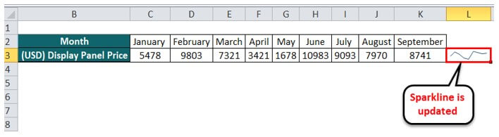 Consider the example where we add a Display Panel Price for September and want to display the corresponding changes in the Sparkline.
