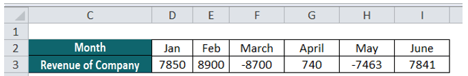 The following example illustrates a company’s revenue performance over six months, and we want to visualize the same in terms of profit or loss using Win/ Loss sparkline in Excel.