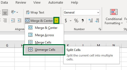 This is the simplest method of splitting or Unmerging cells in Excel.