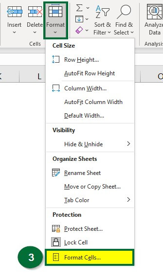 Step 3: Select “Format Cells” from the Format dropdown window.
