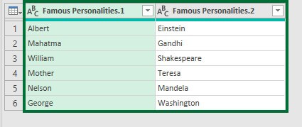 Consider the below data of famous personalities. Here, we want to separate the first and last names into two columns. We will use the delimiter option to split the data.