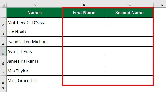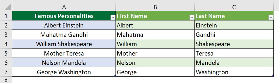 Step 8: Change the column heading to “First Name” and “Last Name”.