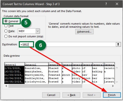 Step 5: Select “General” and the “Destination” cell. After selecting the destination cell, click on “Finish“.