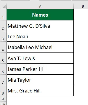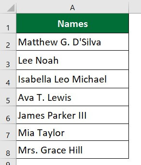 Let’s learn from the below example. We want to split the first and second names using Flash Fill in the data below.