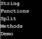 Using the split() function for the string that needs to provide and divide the separator argument, we were going to use the separator as a comma(,), and the return result will be the array split. The output prints each of the strings called the element of an array after each split operation, as shown below,
