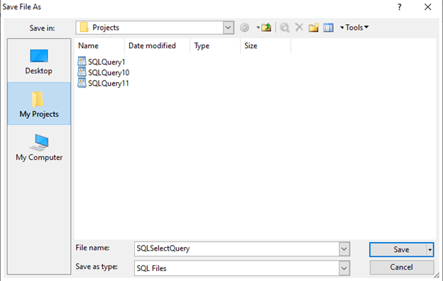 Yes, it has been successfully populated. If you wish to re-run the same SELECT query or share it with your teammates, just save it (by pressing Ctrl + S or from the file menu). Again a dialog box as shown below will appear.
