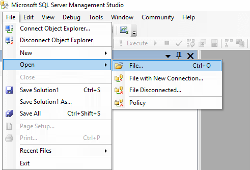 Opening a file of the sql extension type is as easy as creating one. You just follow the following steps.