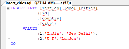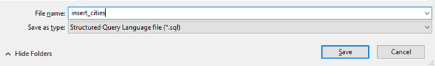 Suppose we do not have access to the Server query editor, but we want to write a query to insert a few records into the cities table. We can use text editors such as notepad, notepad++, atom, sublime, vim, etc. to view, write, or edit .sql files.