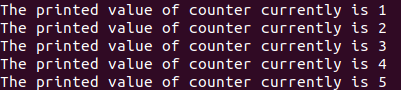The execution of the above statements inside the stored procedure of function and then calling the same will give the following output after execution with the value of the counter variable being printed from 1 to 5 as we have looped the while loop specifying those conditions –
