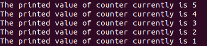Let us now use the while loop to implement for loop like functionality with decrementing counter variable as follows –