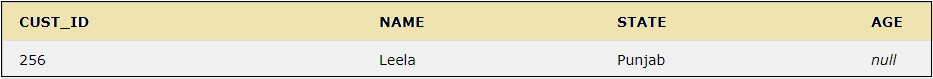 INSERT INTO CUSTOMER VALUES(256,'Leela','Punjab');