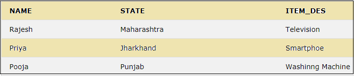 The above result shows the usage of IN keyword, which selects the records only for the states specified within the IN clause.