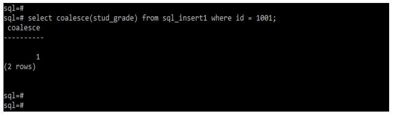 Select coalesce (stud_grade) from sql_insert1 where id = 1001;