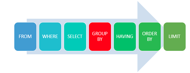 The ORDER BY clause in SQL is evaluated after the FROM, WHERE, SELECT, HAVING, GROUP BY, and clauses. Also, the evaluation of LIMIT clauses is performed after the evaluation of the ORDER BY clause. The following diagram illustrates the sequence of evaluation.
