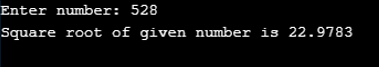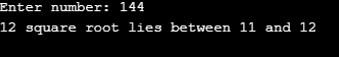 I will not consider the above one perfect, as the output comes properly only if it is a perfect square. This is because; we are increasing the result value by an integer 1 directly. So, if it is not a perfect square, we can show the output below.