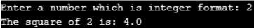 System.out.println("The square of "+ num + " is: "+ Math.pow(num, 2));