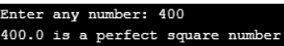 In this example, we are going to check if a number is a perfect square or not. This is a little bit complex program as it checks if a number is a square of another number.