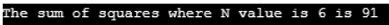 System.out.println("The sum of squares where N value is 6 is "+ squaresum(n));